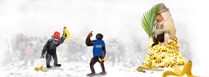 If this was a Disney film, it would probably come back to the pantomime troop of evil baboons hiding behind the curtain of palm fronds… the ones expertly playing one side of chimps against the other so that they can steal all the bananas… [you know who I’m talking about].