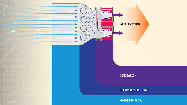 The European Space Agency has just demoed similar technology for operating at the edges of the atmosphere, sucking in and ionizing air rather than carrying propellant.